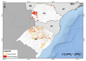 Durante o trabalho de mapeamento, a equipe da Embrapa encontrou diferenças de concentração espacial, bem como de estrutura de produção pelo País. No Paraná, maior estado produtor de peixes de cultivo, as baterias de viveiros estão muito concentradas na região oeste. Estão mais dispersas pelo território no Rio Grande do Sul (imagem ao lado), onde se encontrou a maior quantidade delas, 9 mil. Rondônia, que ocupa a terceira posição no ranking, teve a maior área mapeada de viveiros: 12,5 mil hectares.