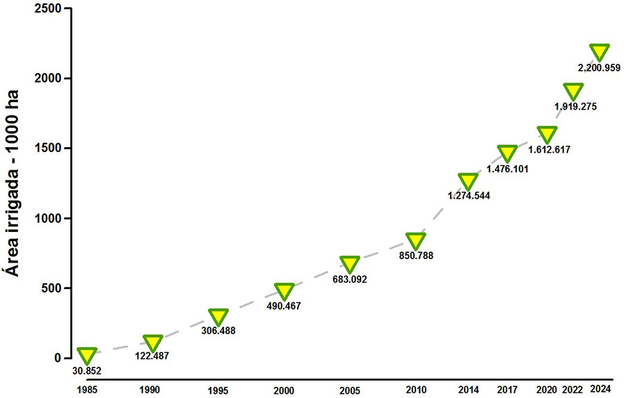 Acréscimo de 140 mil ha e 3,8 mil pivôs
