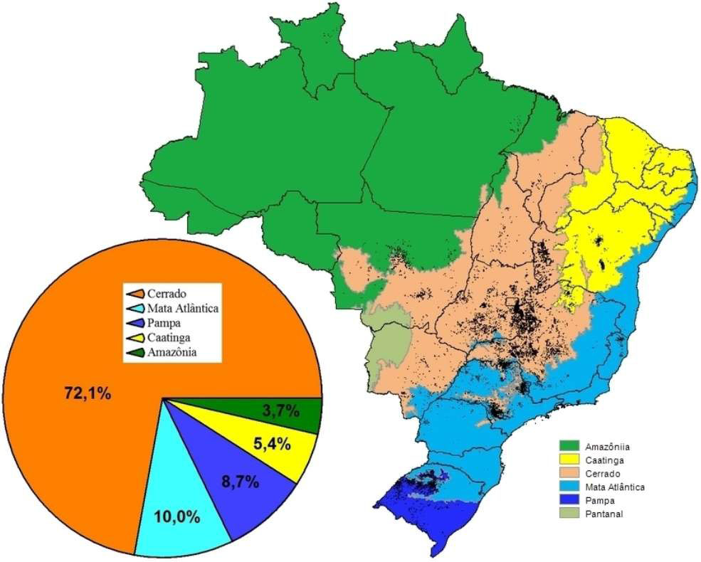 Entre os biomas brasileiros, mais de 70% dos equipamentos de irrigação estão localizados no Cerrado, e apenas o Pantanal não registrou o uso de irrigação por pivôs centrais no atual levantamento. Mais de 70% dos equipamentos de irrigação do País usam águas oriundas das bacias hidrográficas do Rio Paraná (37,7%) e do Rio São Francisco (33,1%).