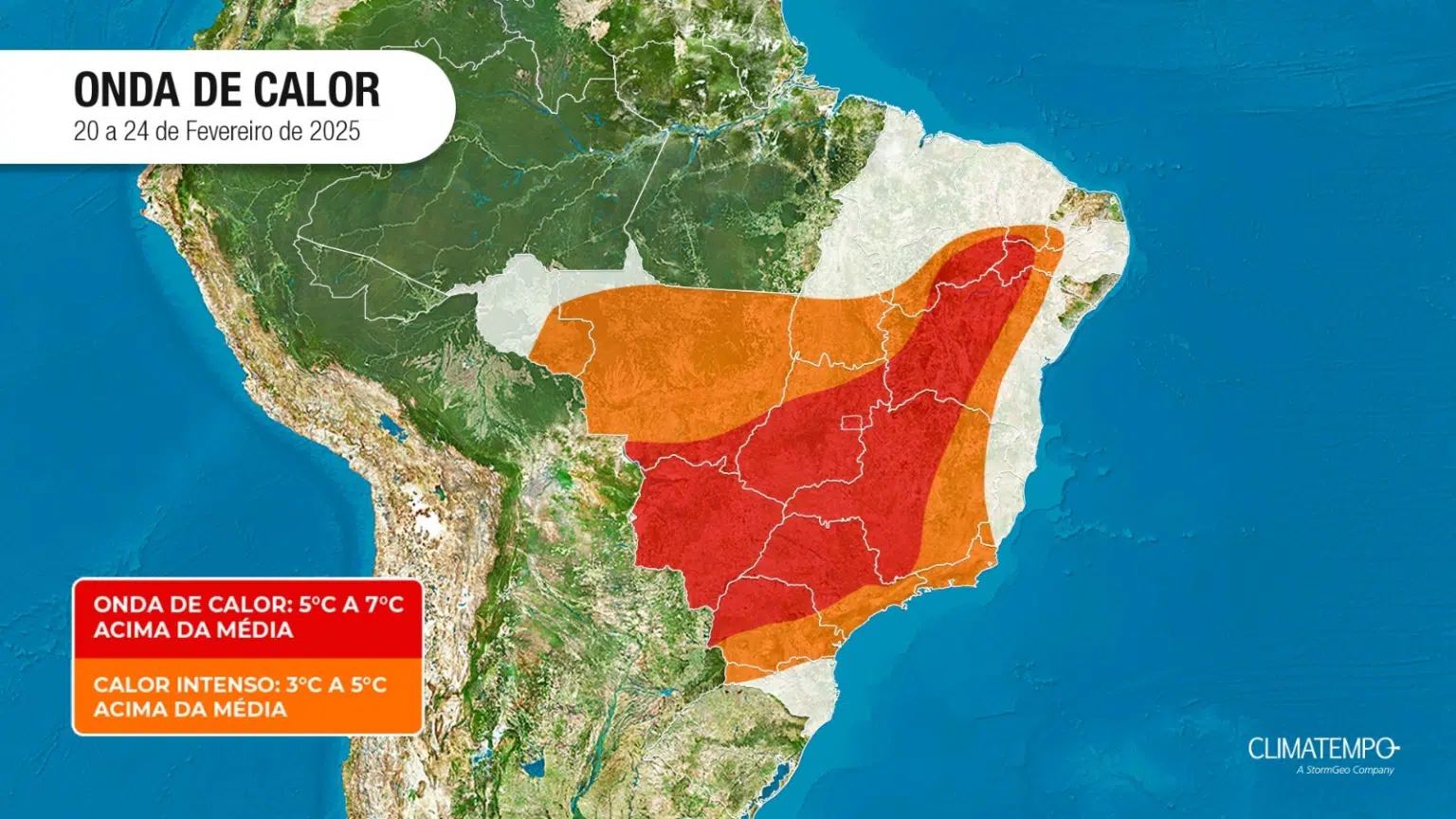 A forte onda de calor que atinge o Brasil há mais de uma semana deve persistir pelo menos até a próxima segunda-feira (24), segundo atualização divulgada pelos meteorologistas da Climatempo. O fenômeno tem elevado os termômetros de 5 °C a 7 °C acima da média em diversas regiões do país, mantendo o calor extremo em dez estados e no Distrito Federal.
