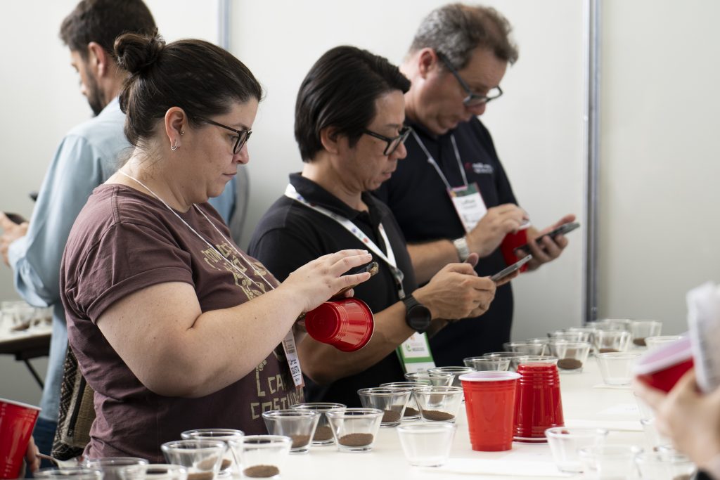 Além das palestras, o SEBRAE Minas promoveu uma Rodada de Negócios focada em cafés especiais. Esse espaço foi uma oportunidade para produtores e empresas se conectarem, com destaque para a área de cupping, onde compradores puderam degustar diferentes cafés. Logo após as provas, o espaço foi dedicado a uma mesa de negócios com informações sobre as propriedades dos cafés degustados, ampliando a experiência dos participantes.